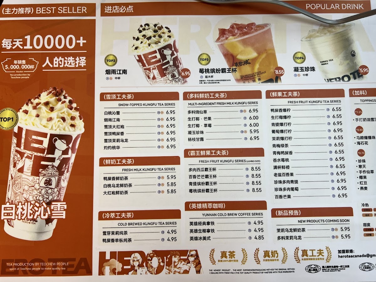 With friendly service and a clean ambiance, Hero Tea Mississauga is set to become your new go-to bubble tea spot!